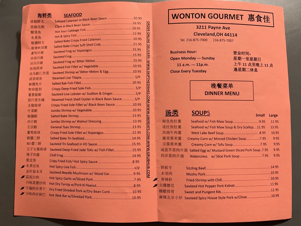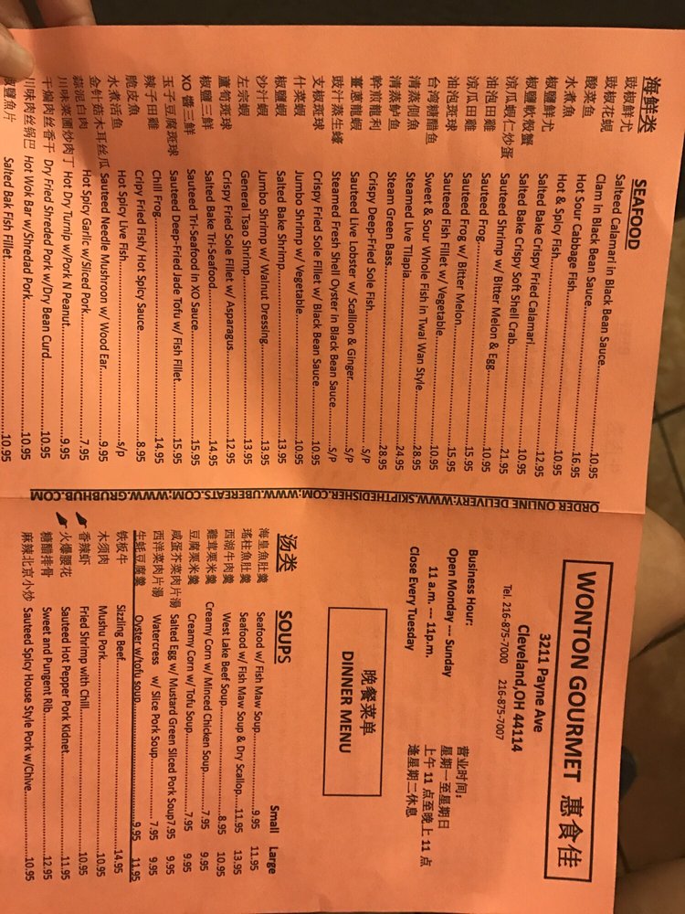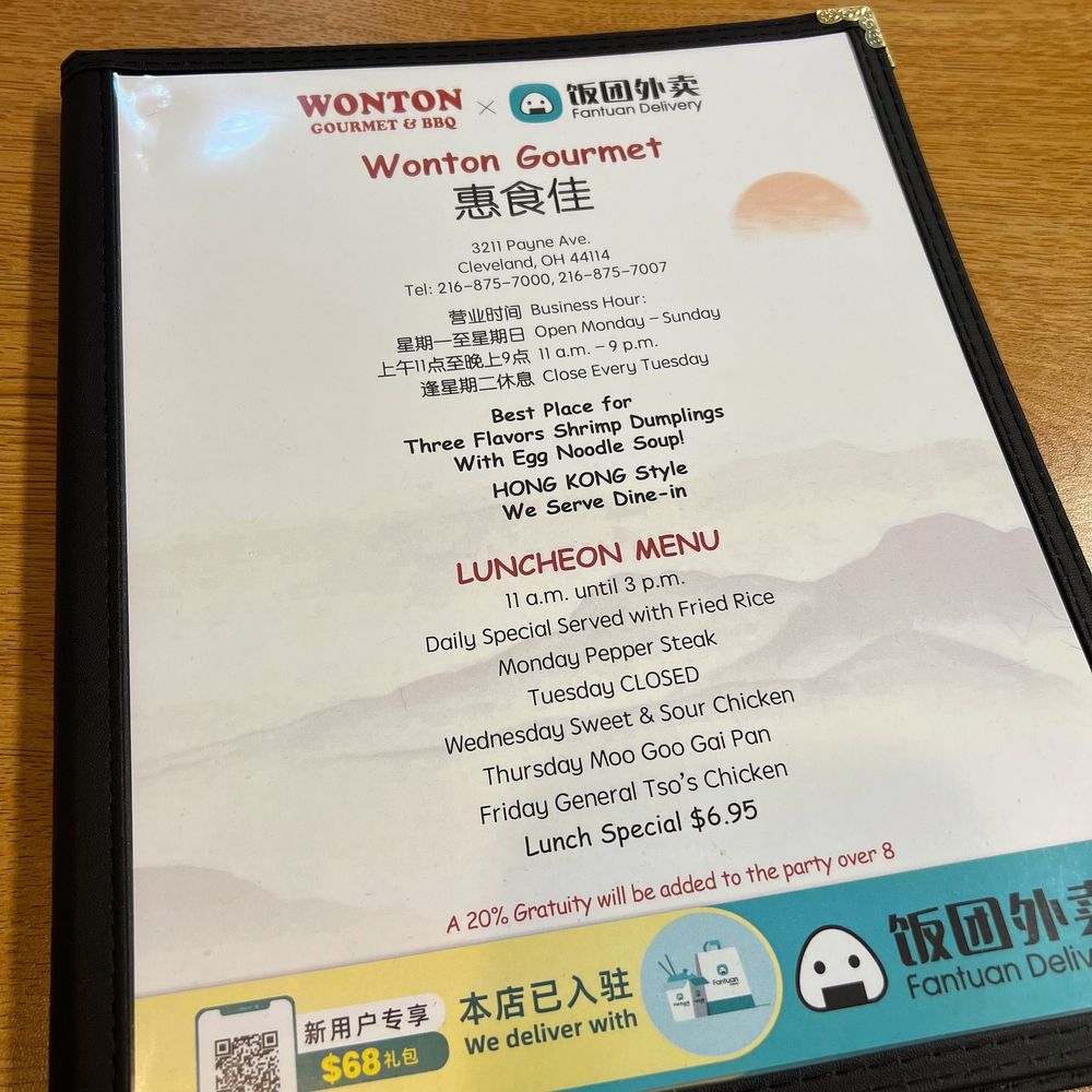 Introducing the menu at Wonton Gourmet & BBQ, located in Cleveland, OH, is a delightful experience for Chinese cuisine enthusiasts. The restaurant offers a wide range of appetizers, including Egg Rolls, Crab Rangoon, and Hot Spicy Wontons. For beef lovers, indulge in dishes like Beef with Broccoli, Szechwan Beef, and Mongolian Beef. Chicken dishes like Sesame Chicken, Orange Chicken, and Kung Pao Chicken are also popular choices. The menu showcases authentic Cantonese flavors with dishes like Moo Goo Gai Pan and Governor's Chicken. Customers rave about the authenticity and quality of the food, with highlights being the beef chow fun and eggplant dishes. With a casual dining atmosphere and excellent service, Wonton Gourmet & BBQ is a must-visit for those craving delicious Chinese cuisine.